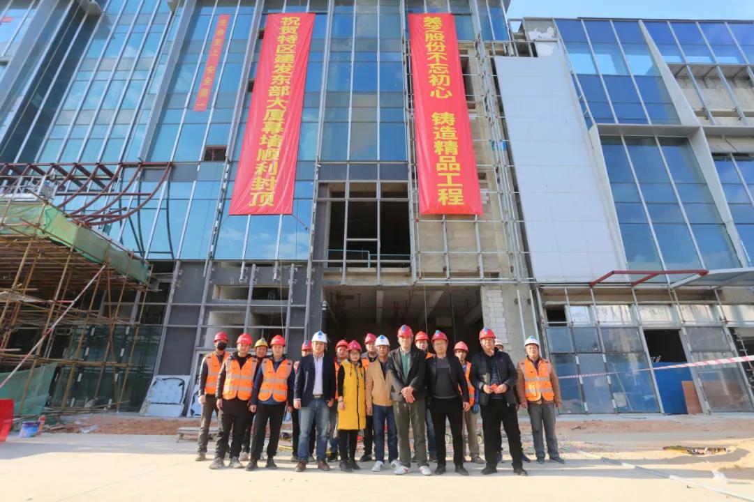2021年1月16日,美芝股份承接的特區(qū)建發(fā)·東部大廈幕墻正式封頂,項目現(xiàn)場舉行了簡單而熱烈的封頂儀式。此次幕墻的順利封頂,標志著深圳市深汕特別合作區(qū)(以下簡:深汕特別合作區(qū))第一座集總部辦公和商業(yè)商務配套為一體的超高層綜合體建筑外立面形象工程完美收官,刷新了深汕特別合作區(qū)幕墻天際線,為合作區(qū)建設增光添彩。